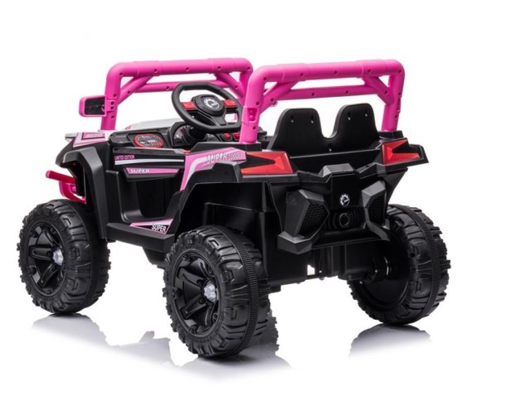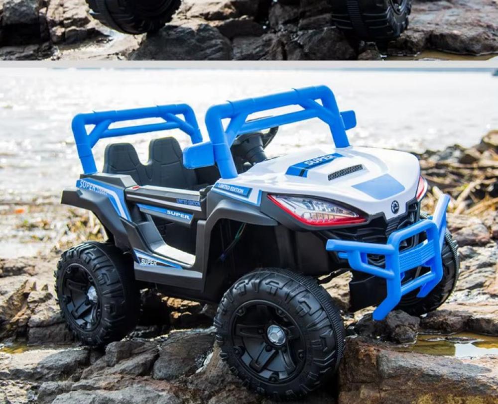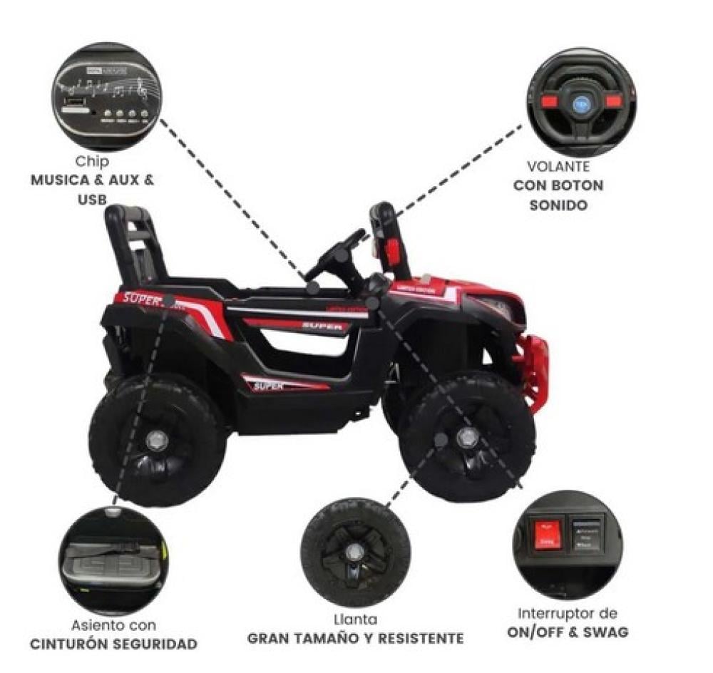 تأتي السيارة مع إضاءة LED أمامية وخلفية، نظام صوتي، مدخل USB وAUX، أبواب قابلة للفتح، وحزام أمان لضمان راحة وأمان الطفل أثناء القيادة.