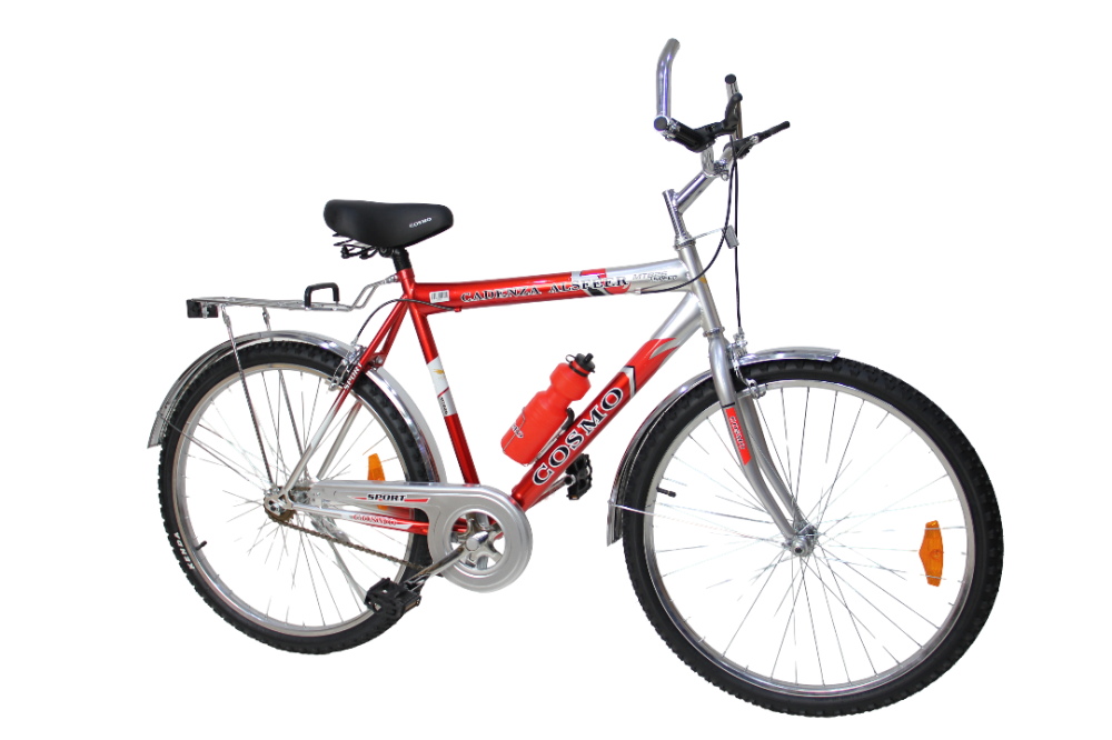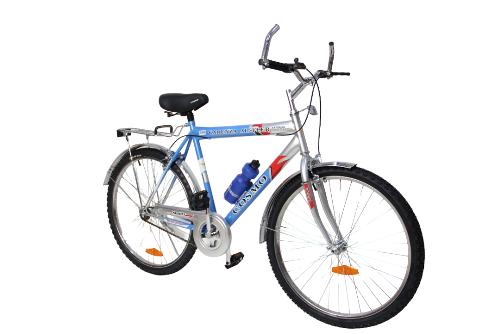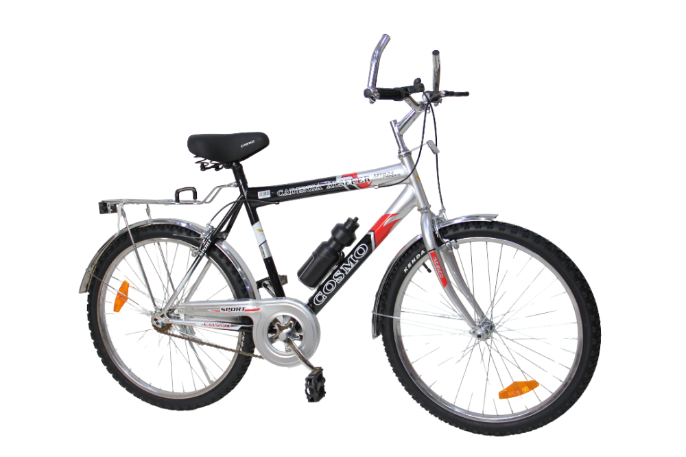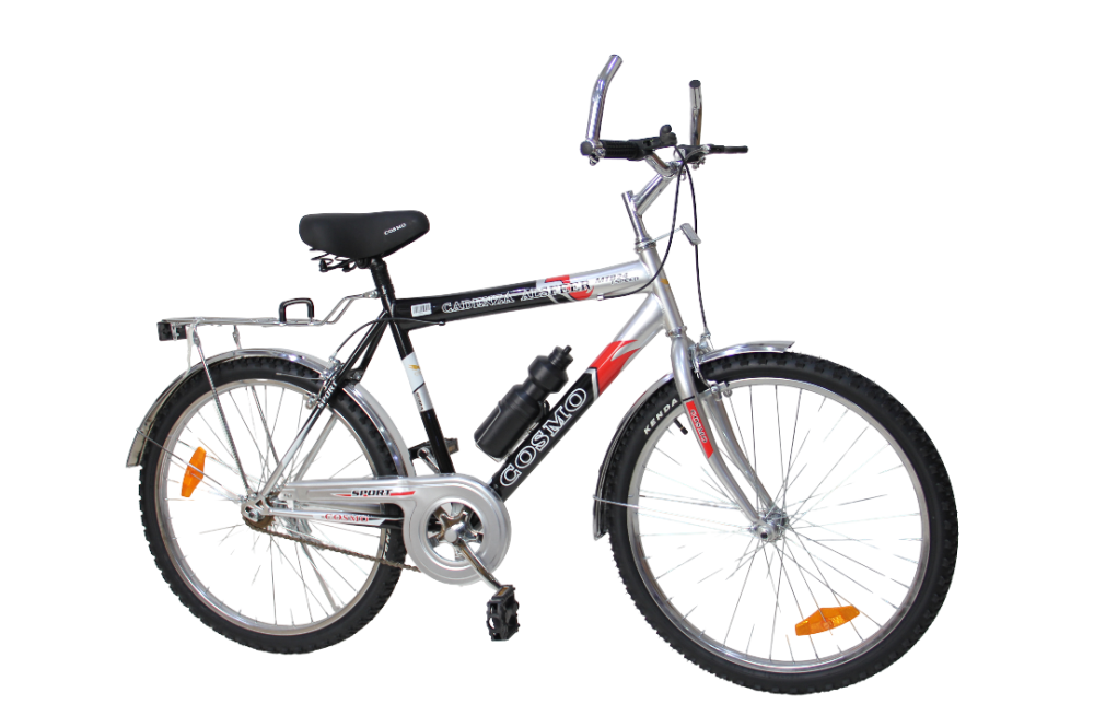 تحتوي الدراجة على الفرامل للسحب الأمامية والخلفية العمودية لكي يستطيع السائق الوقوف بيسر وأمان. تتمتع الدراجة بحواف مصنوعة من المعدن، كما تتسم بأنها خفيفة الوزن وشديدة التحمل. اطارات عجلات دراجات الجبل عريضة لذلك مناسبة للطرق الوعرة. تمتلك الدراجة إطارات للسير في الجبال.سيكل جبلي مقاس 26 كوزمو