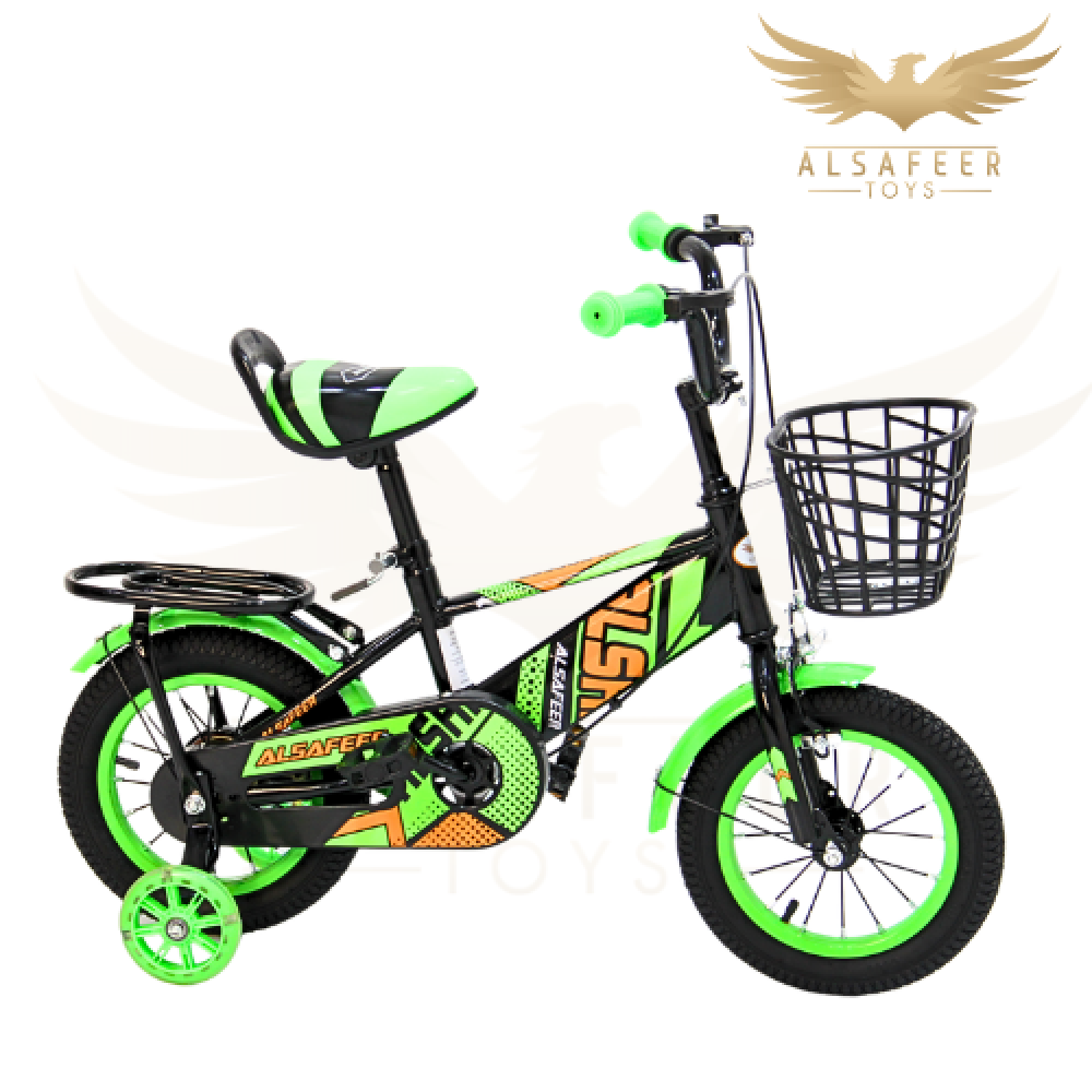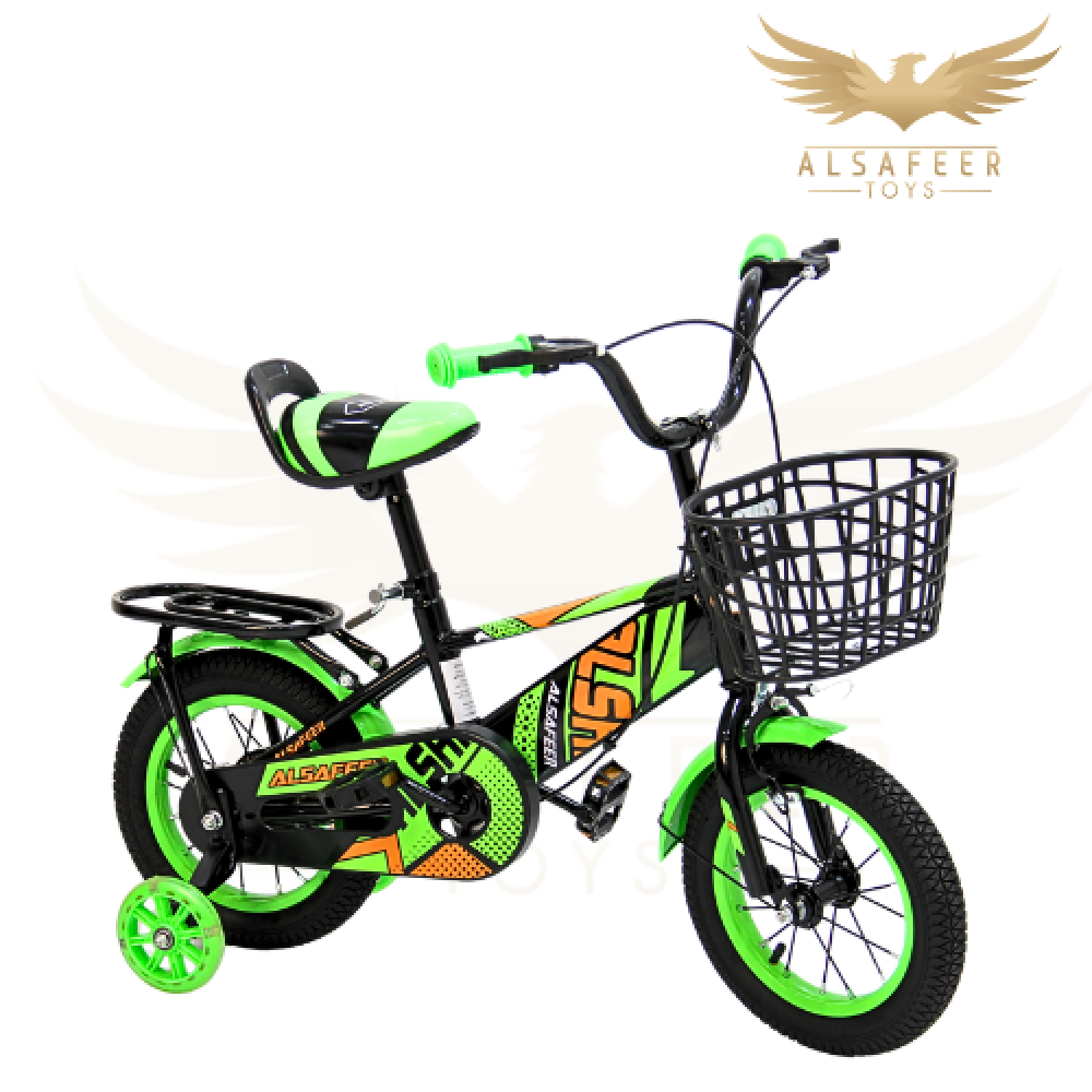 دراجة أطفال مقاس 12إنش من السفير – تصميم رياضي بجنوط أسيام ، رفارف أمامية وخلفية، فرامل يدوية، سلة امامية ومقعد خلفي